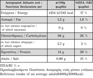 Διατροφική Αξία (ανά 100g): Πρωτεΐνη 14 g και λιπαρά 1.3 g