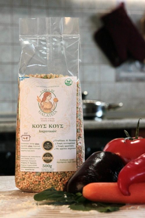 The Rainbow Grain: Το Κουσκούς Λαχανικών μας παρασκευάζεται με την προσθήκη φρέσκου πολτού από καρότο, πιπεριά, σπανάκι και ντομάτα. Κάθε χρώμα αντιστοιχεί σε ένα διαφορετικό λαχανικό, προσφέροντας όχι μόνο οπτική ποικιλία αλλά και ένα σύμπλεγμα βιταμινών σε ένα μόνο πιάτο.
